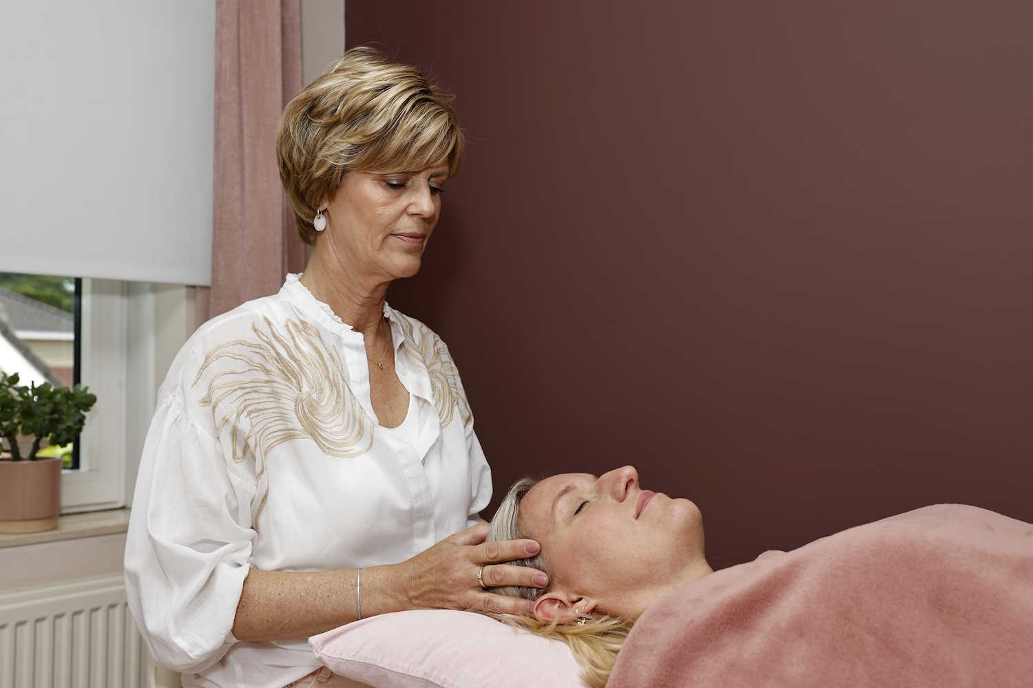 Je ligt aangekleed op een speciaal bed zonder schoenen. Je mag onder een dekentje liggen, soms krijgen mensen het koud tijdens de behandeling. Ik raak even je handen en voeten aan en daarna ga ik achter je zitten en houd je hoofd vast. Aan jou de taak om dan lekker te ontspannen en te genieten.